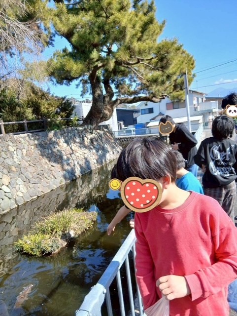 鯉が集まってくる様子に子どもたちも大興奮😊